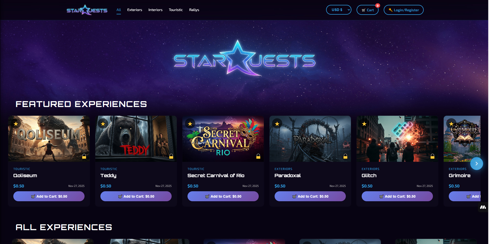 StarQuests dispose d’un potentiel hautement disruptif. Des déploiements sont en cours de développement pour divers secteurs, notamment une chaîne de restaurants en Estrie, le Zoo de Granby, les gorges de Coaticook, ainsi que plusieurs destinations internationales telles que le Colisée de Rome, Walt Disney World (Floride, Californie, Paris, Shanghai, Tokyo, Hong Kong), SM Mall of Asia et d’autres lieux majeurs.